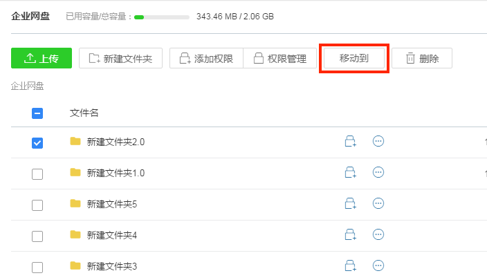 1、我是admin,应该对所有文件夹都具备可转移的权限,可是为什么我的网盘中没有找图示1中的“移动到”按钮?