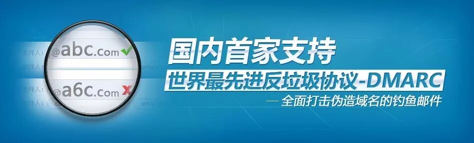 网易企业邮箱支持世界先进的反垃圾协议—DMARC,帮助企业全面打击垃圾、钓鱼类邮件。DMARC协议建立在SPF、DKIM这两份主流邮件认证协议的基础上,是有效解决信头From伪造而诞生的一种新的邮件来源验证手段。